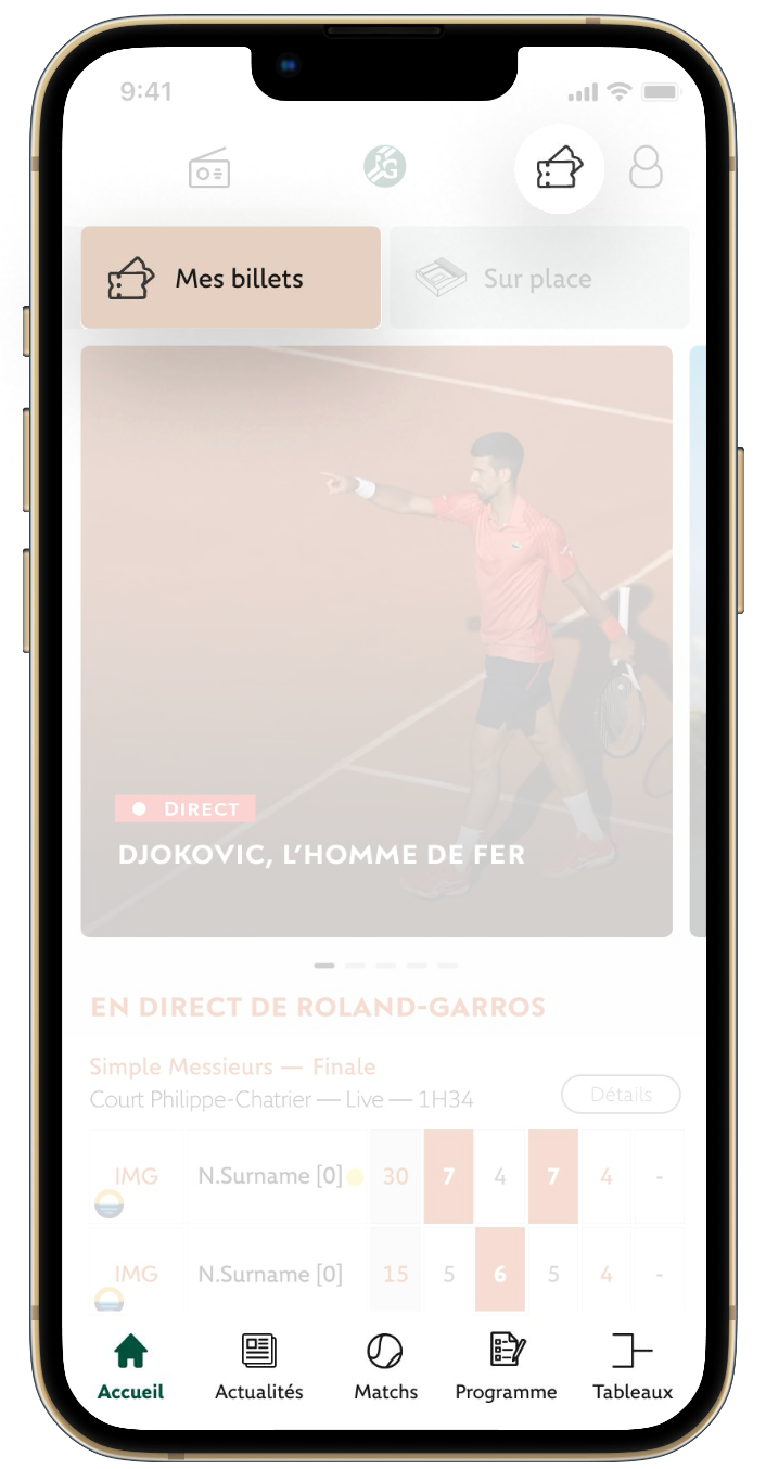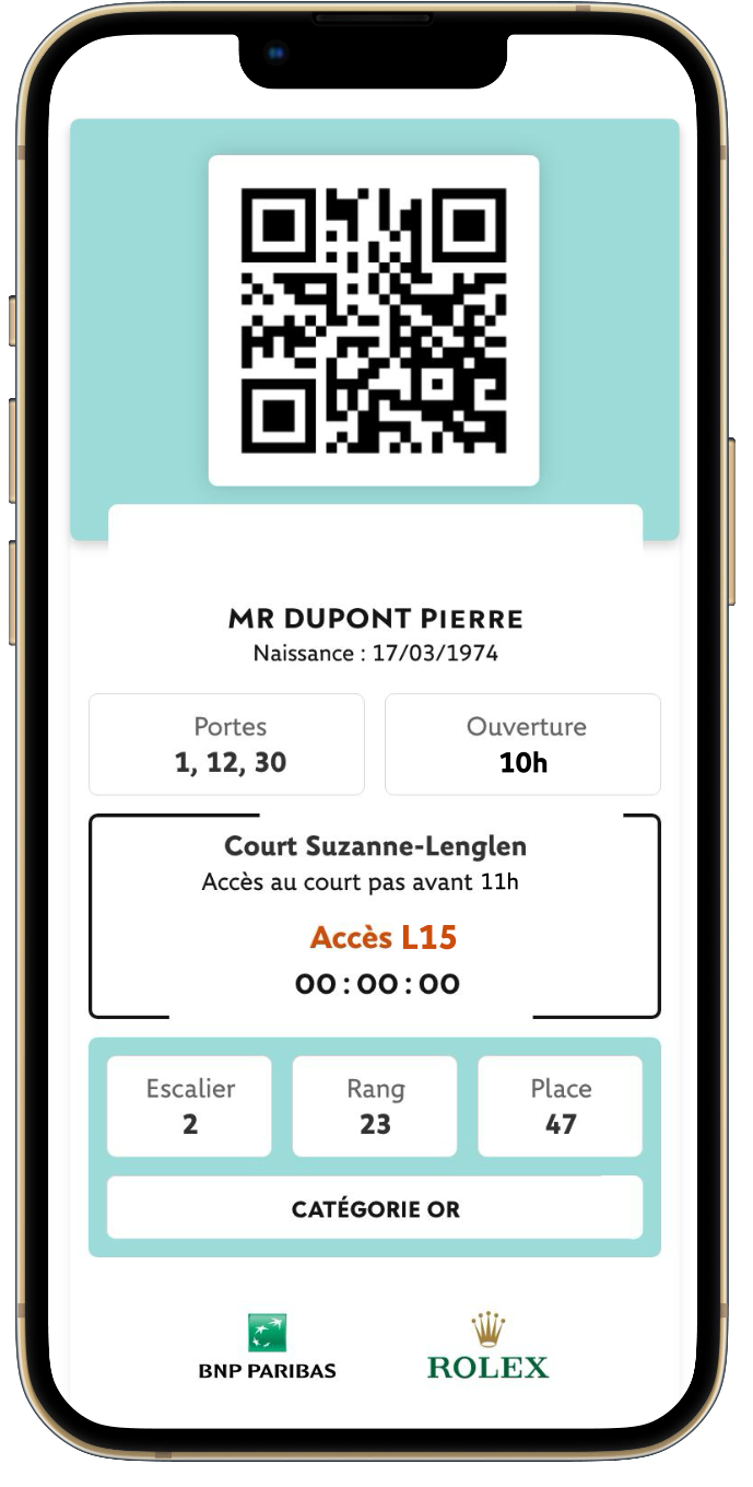 Chaque billet est contrôlé avant envoi et délivré en QR code officiel. À l’approche de votre date, vous importez le billet dans l’application Roland-Garros et accédez directement à votre siège.