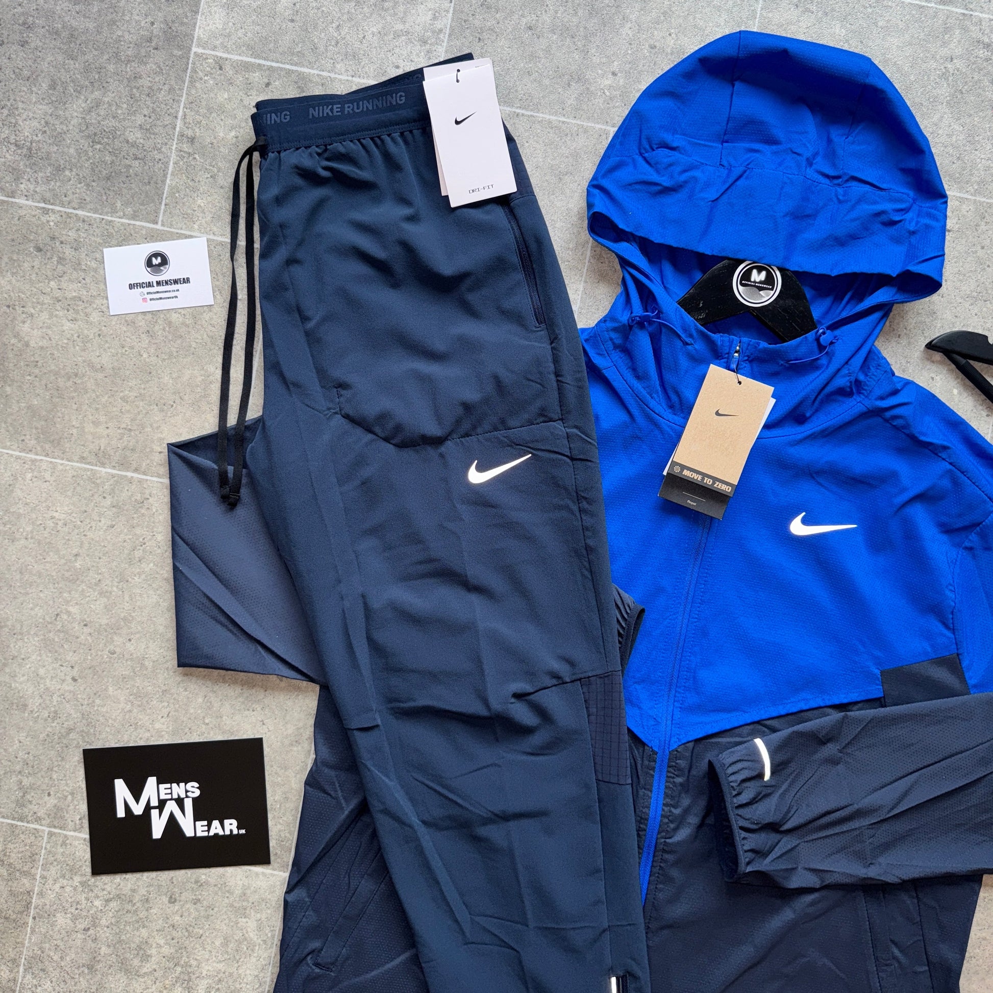 Step up your style and performance with the Nike UV Windrunner Thunder Blue & Nike Navy Phenom Bottoms Set. Perfect for those who are always on the move, this set is built to keep up with your active lifestyle while turning heads. The Nike Windrunner in a striking Thunder Blue is not just about looks – it's a lightweight jacket designed with Dri-Fit technology to keep you cool and dry during any activity. Whether you're hitting the gym, going for a run, or just chilling with friends, this jacket's UV protection and reflective detailing keep you safe and stylish in any weather or time of day.